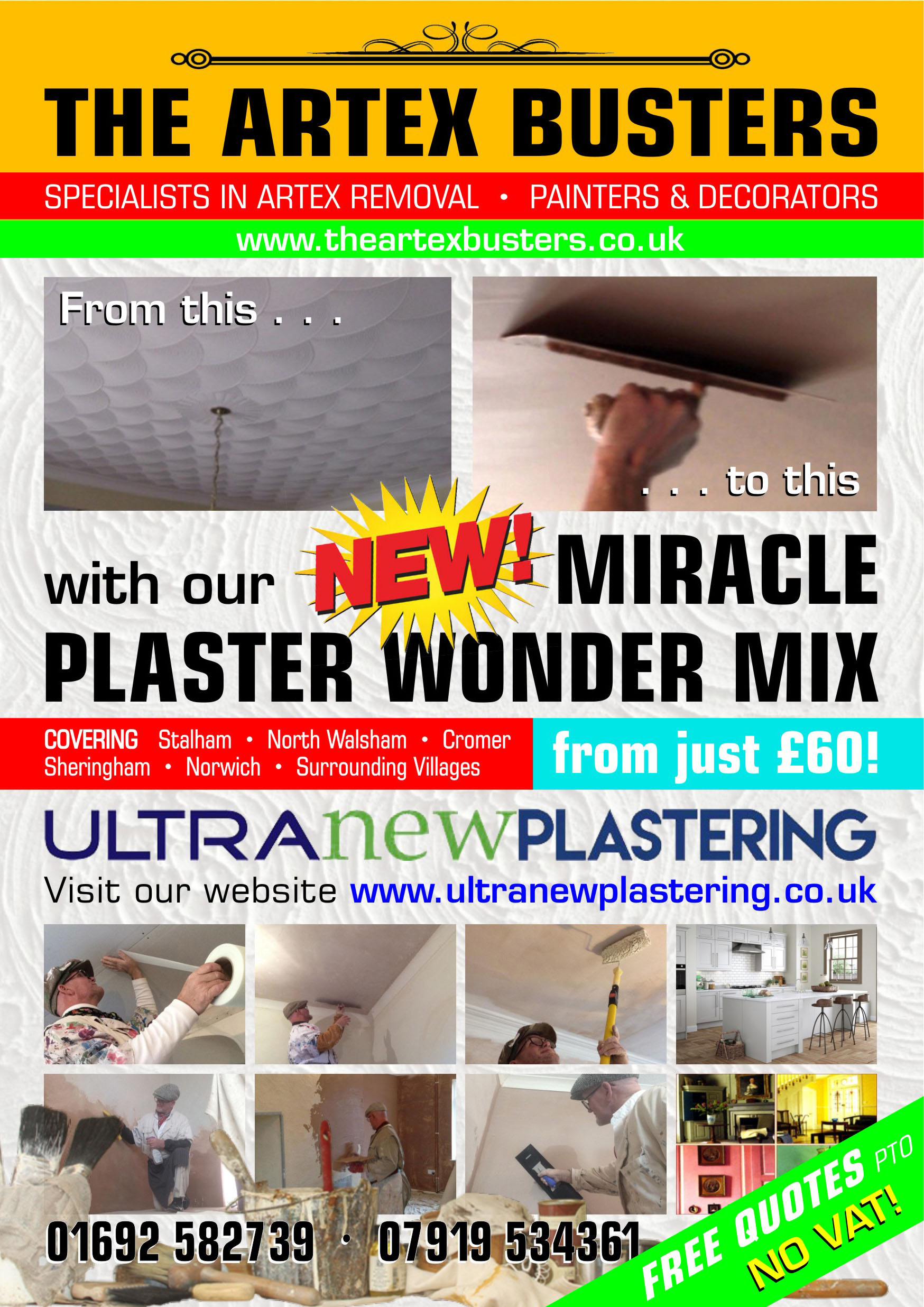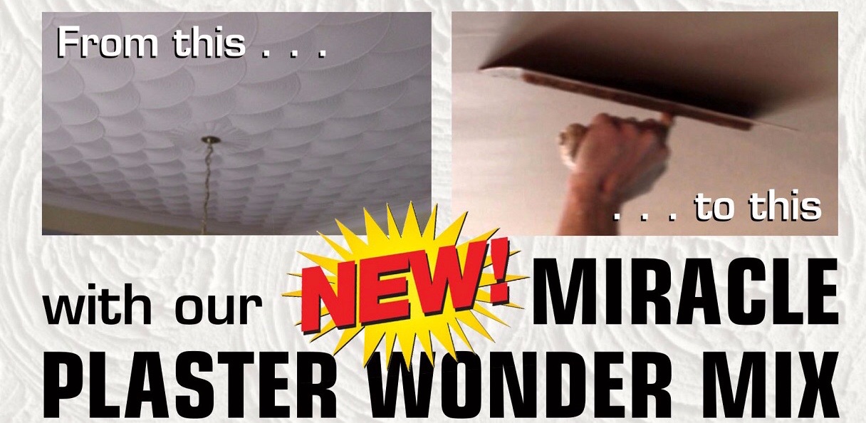 With our all new Miracle plaster mix. No more removing or re-boarding Artex ceilings