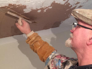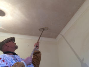 With our all new Miracle plaster mix. No more removing or re-boarding Artex ceilings