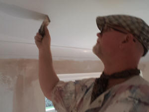 ![]() 4. Fourth coat of emulsion on the ceiling looking good |
